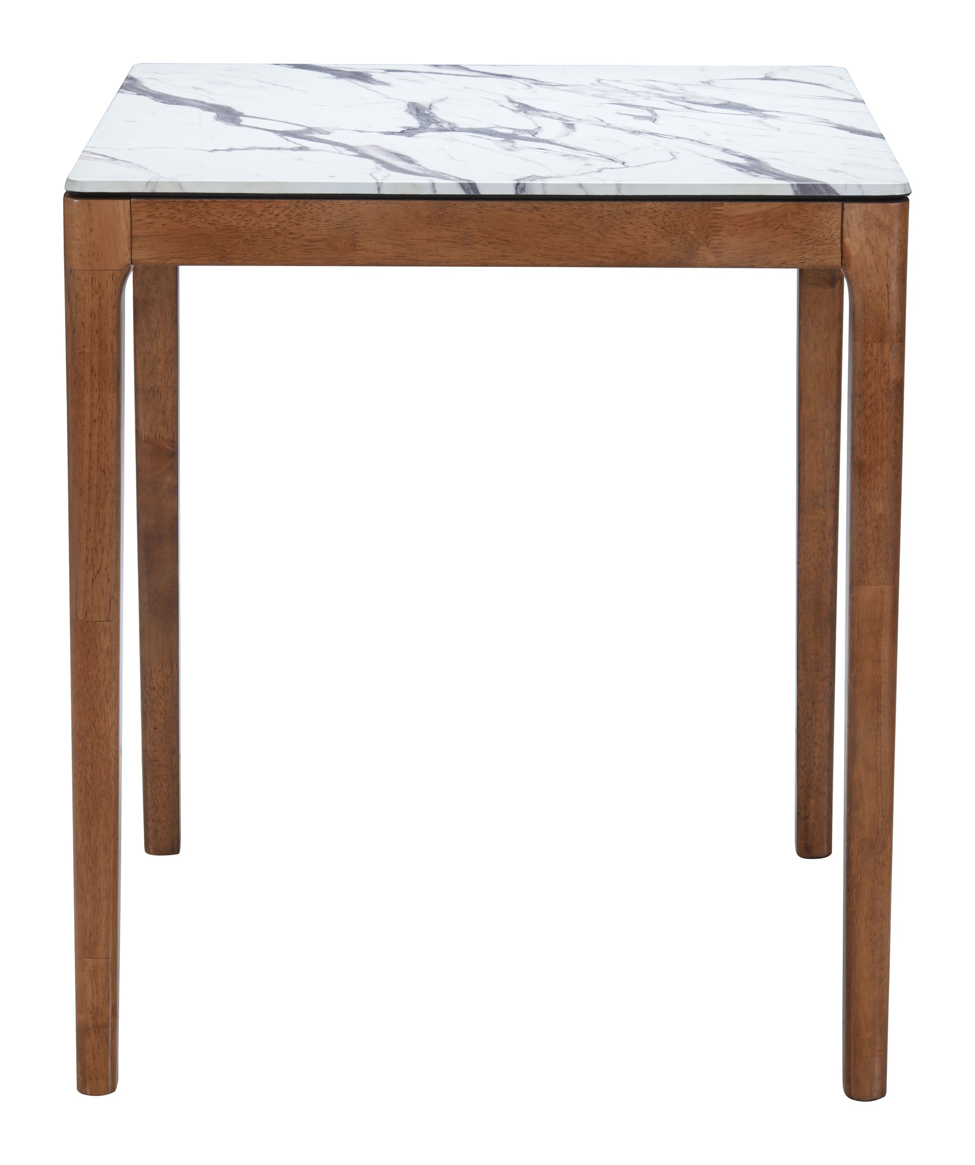 Chic Modern Look – White faux marble with walnut legs for a contemporary finish.